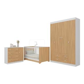 Diferenciais: - 3 anos de garantia contra defeitos de fabricação e material. - Conjunto produzido em madeira de reflorestamento (MDP 12/15mm) com acabamento acetinado (cerca de 20% de brilho): sustentabilidade e durabilidade. - Berço 3 em 1 que se transforma em sofá e minicama, acompanhando o crescimento do bebê. - Lastro em madeira com 3 regulagens de altura e suporte para mosquiteiro para noites mais tranquilas e protegidas. - Grade Soft (PVC): ecologicamente correta, com matéria-prima livre de metais pesados, atóxica e com proteção antiamarelamento. - Berço certificado pelo INMETRO (Selo n 0000085/2018). - Padrão americano (tamanho do colchão indicado: 130x70cm). Colchão não incluso. - Guarda-roupa com 4 portas e 2 gavetas: amplo espaço para organizar roupinhas e acessórios. - Cômoda com 1 porta e 4 gavetas. - Corrediças telescópicas: abertura total e silenciosa das gavetas. - Cabideiro em alumínio: permite acomodar roupas longas e curtas para que não amassem. - Puxadores em ABS delicados e práticos. - Rodapés: visual elegante para o guarda-roupa e a cômoda. - Sistema antitombamento no guarda-roupa e cômoda: proporciona segurança para o bebê e tranquilidade aos pais.