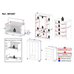 Dimensões do Produto Montado: Berço - Altura: 80,5cm | Largura: 133cm | Profundidade: 77,5cm Guarda-roupa - Altura: 184cm | Largura: 122cm | Profundidade: 41cm Cômoda - Altura: 83cm | Largura: 65cm | Profundidade: 42cm *Você pode consultar as medidas detalhadas na imagem técnica do produto.
