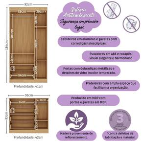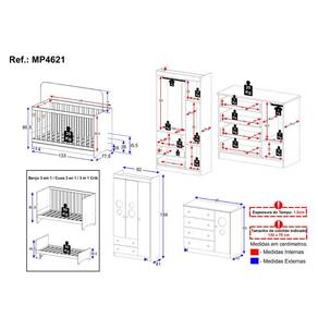 Dimensões do Produto Montado: Berço - Altura: 80,5cm | Largura: 133cm | Profundidade: 77,5cm Guarda-roupa - Altura: 184cm | Largura: 92cm | Profundidade: 41cm Cômoda - Altura: 83cm | Largura: 95cm | Profundidade: 42cm *Você pode consultar as medidas detalhadas na imagem técnica do produto.