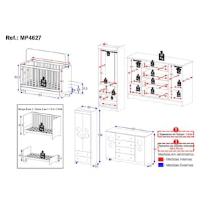 Dimensões do Produto Montado: Berço - Altura: 80,5cm | Largura: 133cm | Profundidade: 77,5cm Guarda-roupa - Altura: 184cm | Largura: 62cm | Profundidade: 41cm Cômoda - Altura: 83cm | Largura: 125cm | Profundidade: 42cm *Você pode consultar as medidas detalhadas na imagem técnica do produto.