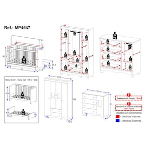 Dimensões do Produto Montado: Berço - Altura: 80,5cm | Largura: 133cm | Profundidade: 77,5cm Guarda-roupa - Altura: 189cm | Largura: 122cm | Profundidade: 41cm Cômoda - Altura: 88cm | Largura: 95cm | Profundidade: 42cm *Você pode consultar as medidas detalhadas na imagem técnica do produto.