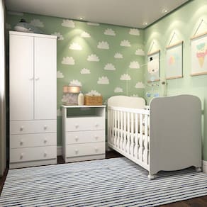 Quarto Infantil com Guarda Roupas 2 Portas 3 Gavetas Cômoda 3 Gavetas e Berço Americano Cambalhota