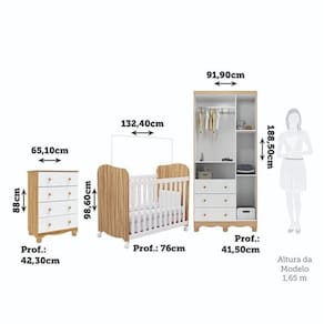 Guarda Roupa: 188,50 x 91,90 x 41,50 (AxLxP) Altura do Conjunto: 188.5 cm Ambiente: null Ambiente Principal: Quarto de Bebê Cor: Branco Brilho/Amêndoa Estrado com Regulagem de Altura: Sim Informação Complementar: 1x Berço Americano 100% Mdf com Rodízios Mimo Branco Brilho/Amêndoa Largura: 132.4 Altura: 98.59999999999999 Peso: 30.9 Profundidade: 76 Necessita Montagem: Sim