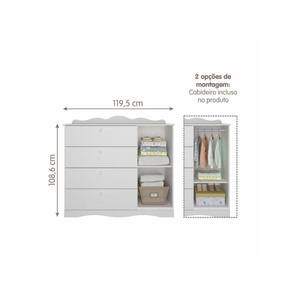 GUARDA ROUPA INFANTIL 100% MDF 4 PORTAS 4 GAVETAS ENCANTO PERMOBILI BRANCO