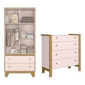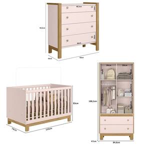 Quarto de Bebê Completo com Berço Slim Cômoda e Roupeiro Flora Rosa Qmovi