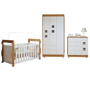 O Quarto de Bebê Completo Bibi traz conforto e funcionalidade para o cantinho do seu bebê. Com um design elegante e prático, o conjunto inclui um guarda-roupa espaçoso, perfeito para organizar as roupinhas, um berço seguro e confortável, e uma cômoda com amplas gavetas para facilitar o armazenamento dos itens essenciais do bebê. Este quarto combina qualidade e sofisticação, proporcionando um ambiente acolhedor para o seu bebê crescer com estilo e bem-estar.