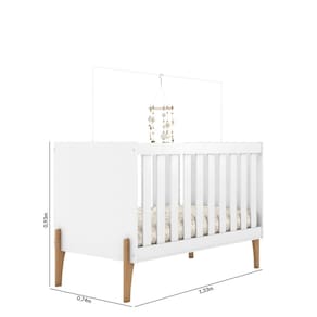 O Quarto de Bebê Liris reúne segurança normativa, estética atemporal e funcionalidade pensada para crescer com seu filho. Produzido 100% em MDF com pintura atóxica e pés em madeira maciça, segue a NBR da ABNT para oferecer resistência e acabamento refinado. O berço transforma-se em mini cama (2 em 1), com estrado regulável em 3 alturas, espaço para colchão 130x70 cm e suporte para mosquiteiro aramado. A cômoda com porta organiza fraldas, roupas e acessórios; o guarda-roupa 3 portas traz compartimentos inteligentes e cabideiro robusto. Linha Liris: conforto, durabilidade e praticidade para o quarto do bebê. Projetado para facilitar a rotina dos pais, o conjunto oferece móveis que otimizam espaço, são duráveis e valorizam o ambiente — escolha para quem quer segurança sem perder estilo sempre Acabamento da Gaveta: Pintura UV Acabamento da Porta: Pintura UV Acompanha Cama Auxiliar: Não Acompanha Colchão: Não Acompanha Manual de Instalação: Sim Acompanha Suporte para Mosquiteiro: Sim - Sem Véu Altura do Conjunto: 203 cm Ambiente Principal: Quarto de Bebê Certificado: 006384/2023 Certificado INMETRO (código): 006384/2023 codigo_ean: 7900288250391 Complexidade da Montagem: Alta: deve ser montado por um montador especializado Cor: Branco Cor do Produto: Branco Cor Flex: Não Cor Interna: Branco Escala de Brilho: Acetinado Escala de Brilho da Gaveta: Semi-Brilho Escala de Brilho da Porta: Semi-Brilho Escala de Brilho da Prateleira: Semi-Brilho Estampado: Não Estrado com Regulagem de Altura: Sim Estrado Regulável em Quantas Posições: 03 Largura do Conjunto: 133 cm Linha ou Coleção: Liris Manual de Montagem e Instalação: https://product-hub-prd.madeiramadeira.com.br/868904174/documents/d8eef6fd-707f-454f-a02a-2c49ee3b83c83253875450417593480426748.pdf Marca: Móveis Estrela Material da Gaveta: MDF Material da Porta: MDF Material da Prateleira: MDF Material do Estrado: MDF Material do Fundo: MDF Material do Puxador da Gaveta: Madeira Maciça Material do Puxador da Porta: Madeira Maciça Material Principal: MDF Medida de Cada Item: Altura / Largura / Profundidade - Berço: 93 x 133 x 74 - Guarda Roupa: 203 x 112 x 40,3 - Cômoda: 95,3 x 113 x 41,5 modular: Sim Montagem Flex: Sim - Berço se transforma em mini cama Necessita Montagem: Sim Origem do Produto: Nacional Permite a Utilização de Cama Auxiliar: Não Peso: Berço: 34 kg - Guarda Roupa: 69 kg - Cômoda: 41kg Peso de Cada Item: Berço: 34 - Guarda Roupa: 69 - Cômoda: 41 Pintura Atóxica: Sim Porta Janelada: Não Possui Capitonê: Não Possui Certificado: Sim Possui Espelhos: Não Possui Gavetas: Sim Possui Grade: Sim Possui Portas: Sim Possui Prateleiras: Sim Possui Rodízio: Não Possui Trocador: Não Profundidade do Conjunto: 74 cm Quantidade de Gavetas: 06 Quantidade de Portas: 04 Quantidade de Prateleiras: 05 Recomendações de Uso, Manutenção e Limpeza: Para limpeza use um pano macio seco ou ligeiramente umedecido com água e depois um pano seco. Não use agentes de limpeza ou abrasivos. Sistema de Montagem: Parafusos, e porcas cilíndricas, cavilhas e pregos. Tamanho do Colchão Indicado (L x C): 1,30 x 0,70 Tipo de Corrediça da Gaveta: Metálica Telescópica Tipo de Dobradiça/Corrediça da Porta: Metálica Tipo de Estrado: Fixo Tipo de Grade: Fixa Tipo de Guarda-Roupa: Bebê Tipo de Porta: Abrir Tipo de Puxador da Gaveta: Externo Tipo de Puxador da Porta: Externo
