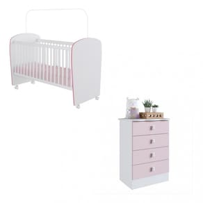 Quarto de Bebê Completo Cômoda e Berço Corujinha Percasa - Rosa