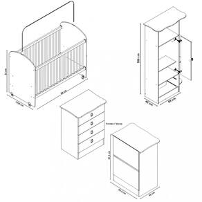 O Berço infantil da Móveis Percasa foi cuidadosamente projetado para garantir o conforto e a segurança do bebê. Estrutura em chapa de MDP de 15 mm, possui bordas de PVC arredondadas e estrado de chapa inteira para maior proteção do bebê. Certificado pelo Inmetro 003922/2018, o berço conta com acabamento em semi-brilho e grades de madeira revestidas com plástico. Acompanha suporte para mosquiteiro e kit de rodízios para facilitar a movimentação. A Cômoda infantil em MDP de 15 mm também se destaca pelo design encantador e pela funcionalidade, ideal para organizar roupas e acessórios com segurança. Já o Guarda-roupa infantil, com estrutura em MDP de 15 mm, oferece resistência e durabilidade, além de gavetas com corrediças telescópicas e portas com dobradiças metálicas. O design charmoso, com puxadores em formato de urso, adiciona um toque de delicadeza ao quarto das crianças, tornando-o funcional e elegante.