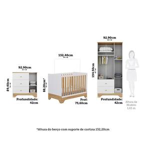 Medida de Cada Item: Guarda Roupa: 194,50cm x 92,90cm x 42cm | Cômoda: 89,40cm x 92,90 cm x 42cm | Berço: 88,20cm x 132,4cm x 75,60cm