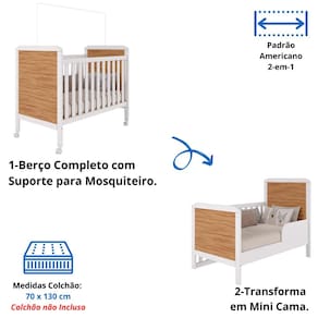 Dimensões do berço montado: Altura 111,5 cm x Largura 135 cm x Profundidade: 78,2 cm