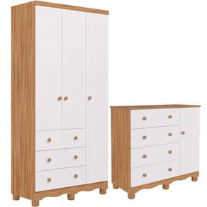 C - Qual a configuração do Guarda Roupa Infantil e Cômoda Infantil Junior da Móveis Peroba? É uma Cômoda infantil Junior com 4 gavetas e 1 porta. Guarda Roupa Infantil Junior com 3 gavetas e 3 portas.
