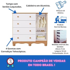 Produtos 100% MDF, pintura atóxica, possuem cabideiro metálico, puxadores plásticos, corrediças metálicas.