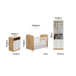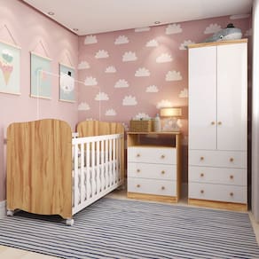 - Acompanha: 1 Guarda-Roupa, 1 Cômoda, 1 Berço, Kit Ferragens e Manual de Montagem