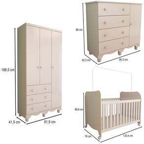 - Acompanha: 1 Guarda-Roupa, 1 Cômoda, 1 Berço, Manual de Montagem e Kit Ferragens