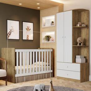 O(a) Quarto de Bebê Completo Thaiany 2 Portas 2 Gavetas Rústico/Branco - Bci Móveis é produzido em MDF e MDP na escala de brilho Brilho e Fosco, e possui um grau de dificuldade de montagem: Médio.