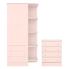 Características Estrutura em MDP Acabamento em Pintura UV Atóxica 02 Portas articuladas 07 Gavetas externas Roupeiro com cantoneiras laterais acopladas Amplo espaço interno com prateleiras Cabideiro oblongo metálico Dobradiças e corrediças metálicas Puxadores em plástico poliestireno com formato de estrela Acabamento das bordas em perfil PVC Sistema anti-tombamento para evitar riscos de acidentes.