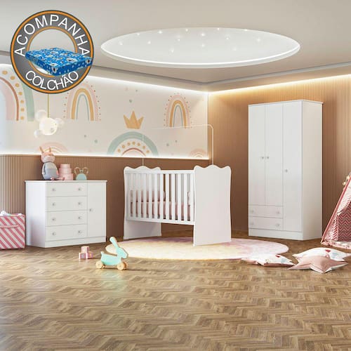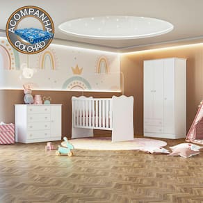 Quarto de Bebê Doce Sonho Completo com Cômoda Sapateira Qmovi Branco + Colchão Ortobom