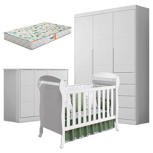 Quarto de Bebê Eloá com Berço Americano Danny Branco Acetinado e Colchão da Gazin – Phoenix Baby