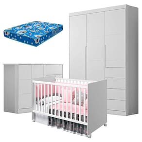Quarto de Bebê Eloá com Berço Americano Tico Branco Acetinado e Colchão Ortobom – Phoenix Baby