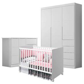 Quarto de Bebê Eloá com Berço Americano Tico Branco Acetinado – Phoenix Baby