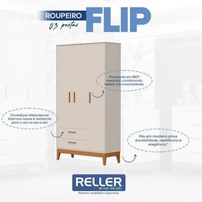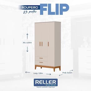 Guarda Roupa Infantil Flip 3 Portas Areia Acetinado - Reller