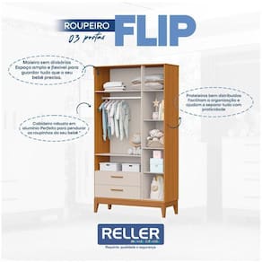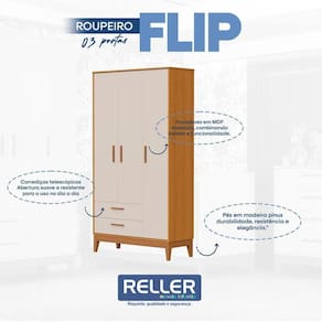 Guarda Roupa Infantil Flip 3 Portas Areia Acetinado Savana - Reller