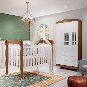 Nosso berço 3 em 1 cheio de estilo para acolher o seu baby nos seus melhores sonhos, inclusive na mini-cama. Com alta resistência mecânica, e a altura regulável, a segurança do seu filho é garantida em todos os momentos. O guarda-roupa também traz o espaço e a resistência necessária para organizar as roupinhas e acessórios da criança. Estes produtos se encontram disponíveis nas cores Branco Brilho e Branco Fosco com Amadeirado.