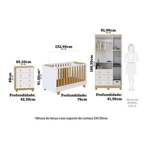 Crie um ambiente encantador e funcional com este quarto de bebê completo 100% MDF, desenvolvido para oferecer segurança, conforto e estilo. O berço certificado pelo INMETRO possui regulagem de altura e pode ser transformado em minicama, ou minisofá, ou escrivaninha, acompanhando o crescimento do bebê. O Guarda-roupas e cômoda possuem corrediças telescópicas que garantem abertura suave e durabilidade nas gavetas e 1 cabideiro metálico, para maximizar a organização da sua rotina. Com design clássico moderno e acabamento delicado, o conjunto traz um toque de leveza e elegância ao espaço infantil.
