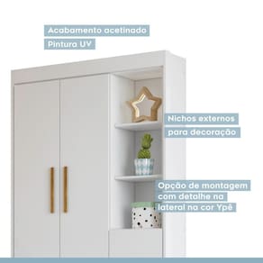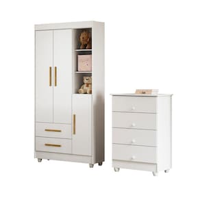 Quarto de Bebê Guarda Roupa 3 Portas e Cômoda 100% MDF Nina Branco. Esse lindo Conjunto de Quarto Infantil é tudo o que você pediu em um único ambiente. Toda essa combinação foi pensada para que este conjunto permaneça em sua casa por muitos anos, acompanhando o crescimento de seus pequenos. O Roupeiro Nina possui 3 portas e 2 Gavetas externas com corrediças telescópicas que permite um deslize mais seguro e suave, produzidos 100% em MDF. Excelente divisão interna, com cabideiro resistente para melhor organização das roupas, puxadores da cômoda em ABS e do roupeiro em MDF. O Roupeiro Nina é flex, com dupla opção de cor, podendo ser todo Branco ou Branco/Amadeirado, ele é perfeito para tornar o ambiente do seu filho ainda mais lindo e aconchegante. Ean: 7909903361610