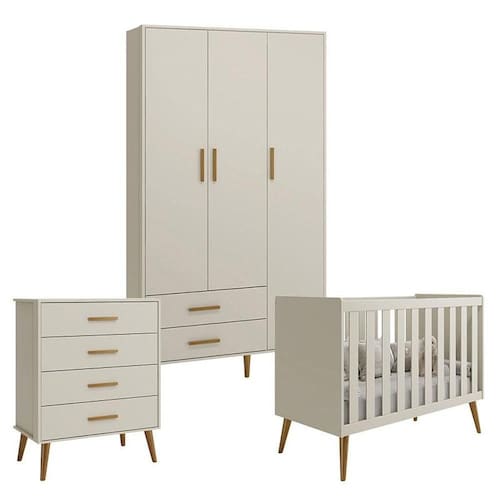 Quarto de Bebê Isis 3 Portas com Gaveteiro Areia Acetinado - Reller