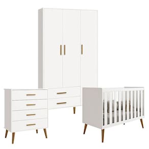 Quarto de Bebê Isis 3 Portas com Gaveteiro Branco Acetinado - Reller