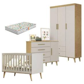 Quarto de Bebê Ludmila Off White Bétula com Colchão Gazin - Carolina Baby