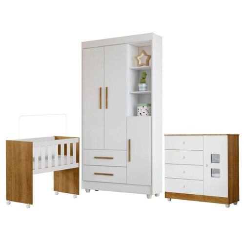Celebre a chegada do seu bebê com nosso conjunto completo. O berço proporciona um sono tranquilo e seguro, enquanto a cômoda e o guarda-roupa oferecem espaço generoso para roupas e acessórios. Com design encantador e funcionalidade excepcional, este conjunto é o cenário perfeito para os primeiros capítulos da vida do seu bebê. Altura do Conjunto: 187 cm Ambiente: null Ambiente Principal: Quarto de Bebê Cor: Branco/Madeirado Ypê Estrado com Regulagem de Altura: Não Informação Complementar: 1x Mini Berço 100% MDF com Colchão 5 em 1 Ariel Branco/Ypê Largura: 94 Altura: 80 Peso: 17.3 Profundidade: 43 Necessita Montagem: Sim