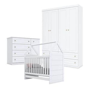 Quarto de Bebê Mississipi 4 Portas com Berço Montessoriano Americano Branco - Henn