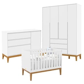 Quarto de Bebê Nature Clean 4 Portas com Berço Unique Branco Soft Eco Wood Matic