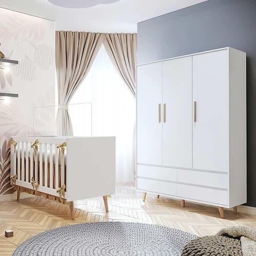 Todo o carinho de uma marca expresso na delicadeza e charme de suas peças. No modelo retrô, com os pés palito, o berço 3 em 1 pode ser aproveitado também como mini-cama e mini-sofá, enquanto o guarda-roupa oferece em espaço prateleiras, cabideiros e gavetas com travas de segurança e alta resistência mecânica. Estes produtos se encontram disponíveis nas cores Branco Fosco com Bétula, Cinza Fosco e Rosa Fosco.
