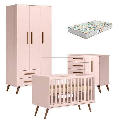 Quarto de Bebê Retrô Rosa com Colchão Gazin - Qmovi