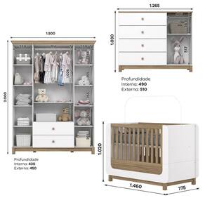 "Esse Quarto de Bebê é composto pelo Berço, Guarda Roupas e Cômoda Aconchego. Diferenciais do Berço: - 2 em 1: Berço e Minicama. - Estrado com duas regulagens de altura. - Grades Fixas com Bordas Arredondadas. - Cantos Arredondados. - Pés em MDF Revestidos. - Detalhes Usinados. - Pintura Atóxica. Diferenciais do Guarda Roupas: - Portas Janeladas com Vidro. - Puxadores em Madeira com pintura. - Gavetas com Corrediças Metálicas. - Cabideiro em Alumínio. - Pés em MDF Revestidos. - Chapéu com Acabamento Soft. Diferenciais da Cômoda: - Porta Janelada com Vidro - Puxadores em Madeira com pintura. - Gavetas com Corrediças Telescópicas. - Pés em MDF Revestidos." Acompanha Manual de Instalação: Sim Altura do Conjunto: 200 cm Ambiente Principal: Quarto de Bebê Certificado: 002 747/2024 Certificado INMETRO (código): 002 747/2024 codigo_ean: 7900288221841 Complexidade da Montagem: Alta: deve ser montado por um montador especializado Cor: Branco Cor do Produto: Branco Cor Interna: Trama Branco (Branco Acinzentado) Escala de Brilho: Fosco Escala de Brilho da Porta: Fosco Escala de Brilho da Prateleira: Fosco Largura do Conjunto: 150 cm Linha ou Coleção: Aconchego Manual de Montagem e Instalação: https://product-hub-prd.madeiramadeira.com.br/880786284/documents/ebaaff79-c0fb-461c-b39b-8d0250a084613174142326617567533231864.pdf Marca: Henn Material da Gaveta: MDF/MDP Material da Porta: MDF/MDP Material da Prateleira: MDF/MDP Material do Estrado: MDF/MDP Material do Fundo: MDF/MDP Material do Puxador da Gaveta: Madeira Maciça Material do Puxador da Porta: Madeira Maciça Material Principal: MDF/MDP Medida de Cada Item: (Berço AxLxP) 102cm X 146cm X 77,5cm (Roupeiro AxLxP) 200 X 150 x 45cm(Cômoda AxLxP) 103cm X 126,5cm X 51cm modular: Não Necessita Montagem: Sim Origem do Produto: Nacional Peso: Roupeiro: 88kg Cômoda: 49kg Berço: 45kg Peso de Cada Item: Roupeiro: 88kg; Cômoda: 49kg; Berço: 45kg Porta Janelada: Sim Possui Certificado: Sim Possui Espelhos: Não Possui Gavetas: Sim Possui Portas: Sim Possui Prateleiras: Sim Possui Rodízio: Não Profundidade do Conjunto: 45 cm Quantidade de Gavetas: 06 Quantidade de Portas: 05 Quantidade de Prateleiras: 10 Recomendações de Uso, Manutenção e Limpeza: Para limpeza de seu móvel, use uma flanela seca ou umedecida. Não utilize produtos químicos que possam danificar o produto. Sistema de Montagem: Parafusos e cavilhas Tipo de Corrediça da Gaveta: Metálica Telescópica Tipo de Dobradiça/Corrediça da Porta: Metálica Tipo de Porta: Bater Tipo de Puxador da Gaveta: Externo Tipo de Puxador da Porta: Externo