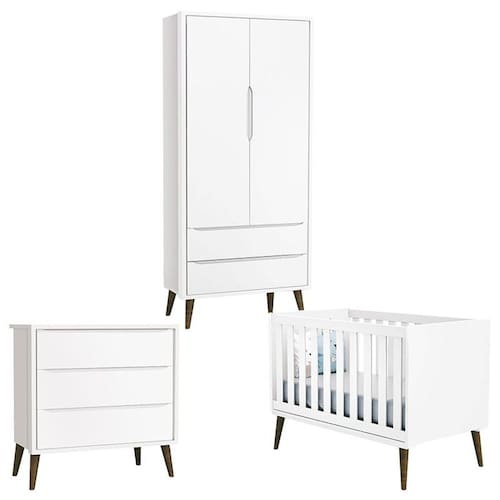Quarto de Bebê Theo 2 Portas Branco Acetinado com Pés Amadeirado - Reller