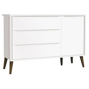 Cômoda Infantil Theo 1 Porta Branco Acetinado com Pés Amadeirado Reller
