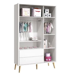 Guarda Roupa Infantil Theo 3 Portas Branco Acetinado com Pés Madeira Natural – Reller