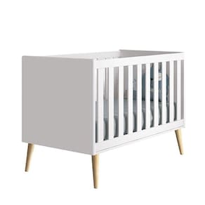 Berço Americano Theo Branco Acetinado com Pés Madeira Natural - Reller