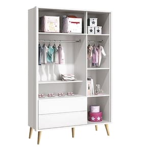 Guarda Roupa Infantil Theo 3 Portas Branco Acetinado com Pés Madeira Natural Reller