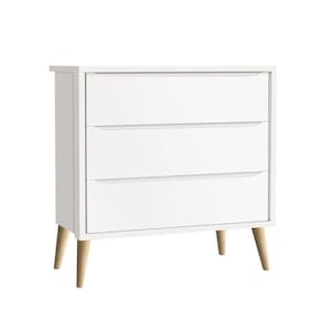 Cômoda Gaveteiro Infantil Theo Branco Acetinado com Pés Madeira Natural - Reller