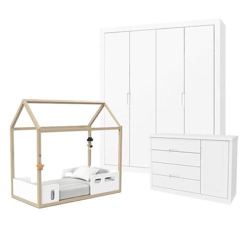 Quarto de bebê Tutto New 4 Portas e Mini Cama Montessoriana Liv Branco Soft Natural - Matic