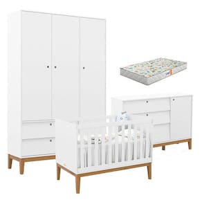 Quarto de Bebe Unique 4 Portas com Cômoda Sapateira Branco Soft Eco Wood e Colchão Gazin - Matic