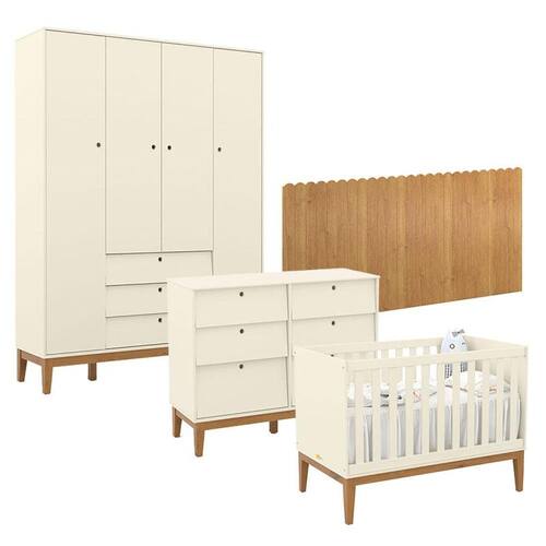 Quarto de Bebê Unique 4 Portas com Cômoda 6 Gavetas e Painel Farm Off White Eco Wood - Matic