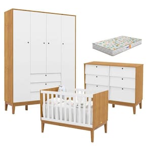 Quarto de Bebe Unique 4 Portas com Cômoda 6 Gavetas Freijó Branco Soft Eco Wood e Colchão Gazin - Matic