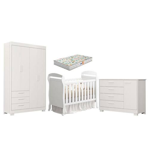 Quarto de Bebê Zaki e Berço Americano Danny Branco Acetinado com Colchão Gazin - Reller